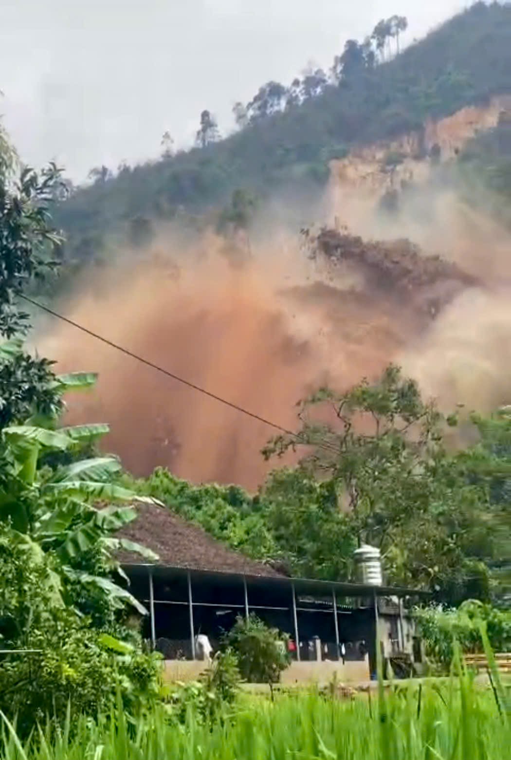 Đây là hình ảnh nhà em Thu Trang thôn Khe Bím, xã Tân Phượng, đang là học sinh lớp 12 trường THPT Mai Sơn, sạt lở đổ xuống cuốn theo căn nhà của gia đình em đang ở. Cho đến hôm nay, em và những người trong gia đình mặc dù đã thoát cửa tử thần nhưng vẫn chưa hết bàng hoàng, hoảng sợ. Nhưng trên cả mất mát đó là những ngày sắp tới em và gia đình không có nhà để về.